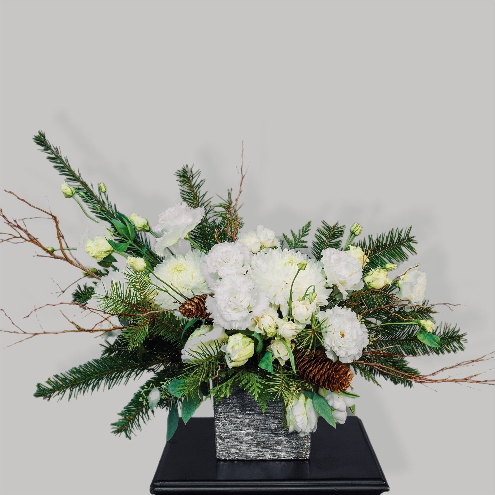 Perfect for holiday gatherings, gifting, or creating a serene seasonal atmosphere. This arrangement brings a harmonious blend of nature’s beauty and elegance